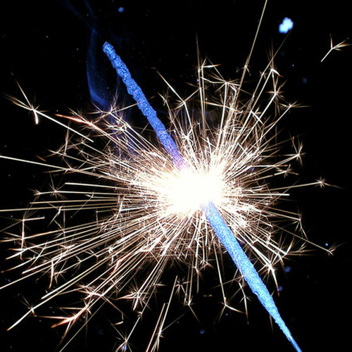 Разлетающиеся серебряные искры. Бенгальские свечи окрашены в разные яркие цвета.