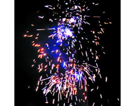 Долгий, многоэффектный фонтан с золотыми и серебряными искрами, трещащими вспышками, разноцветными жемчужинами.