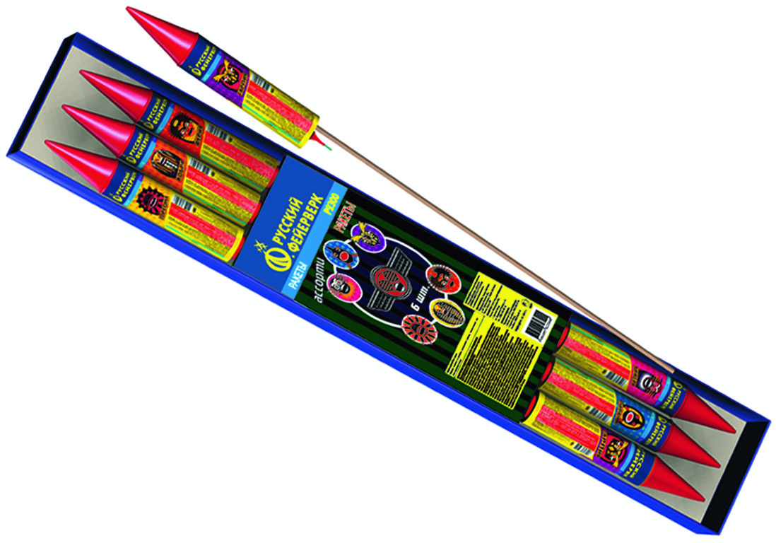 Ракеты Ракеты Ассорти Боровичи Р2300 купить 830 руб. упаковка 6 штук Русский фейерверк фирменный магазин отгрузка в день заказа в Боровичах | borovichi.torgsalut.ru